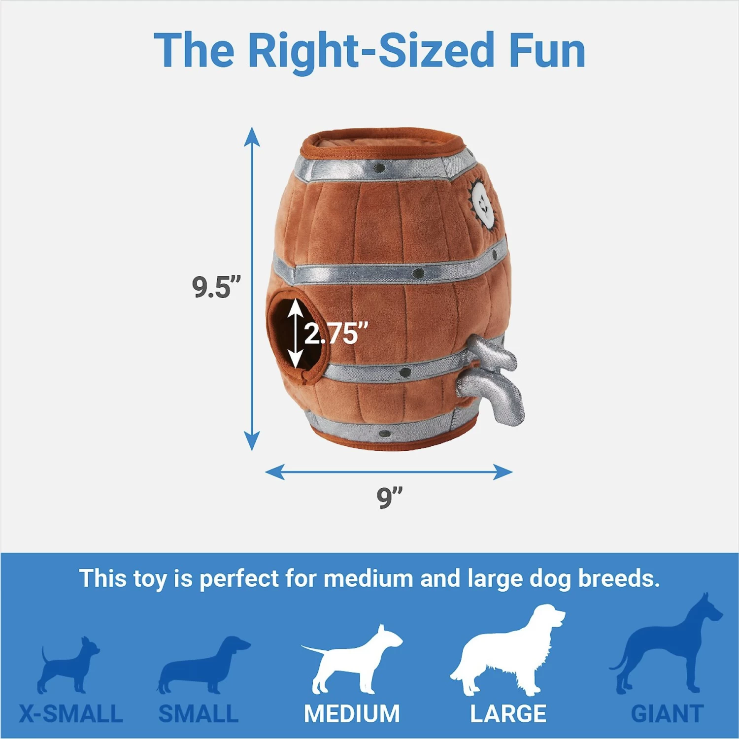 - Puzzle toy set comes with a plush wood-barrel base and three mini beer plush toys that you can stash for your pup to retrieve for some hide-and-seek fun.