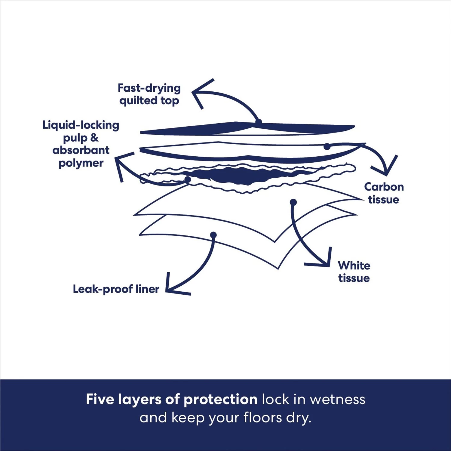- Fast-drying, super-absorbent pads with built-in attractant encourages dogs to potty in the same place each time.