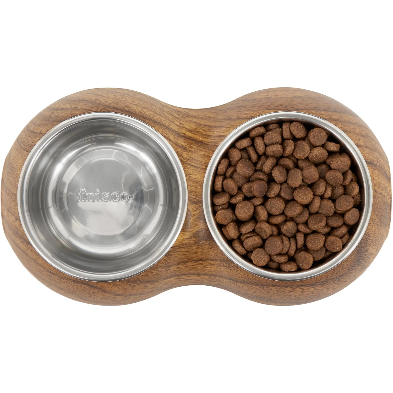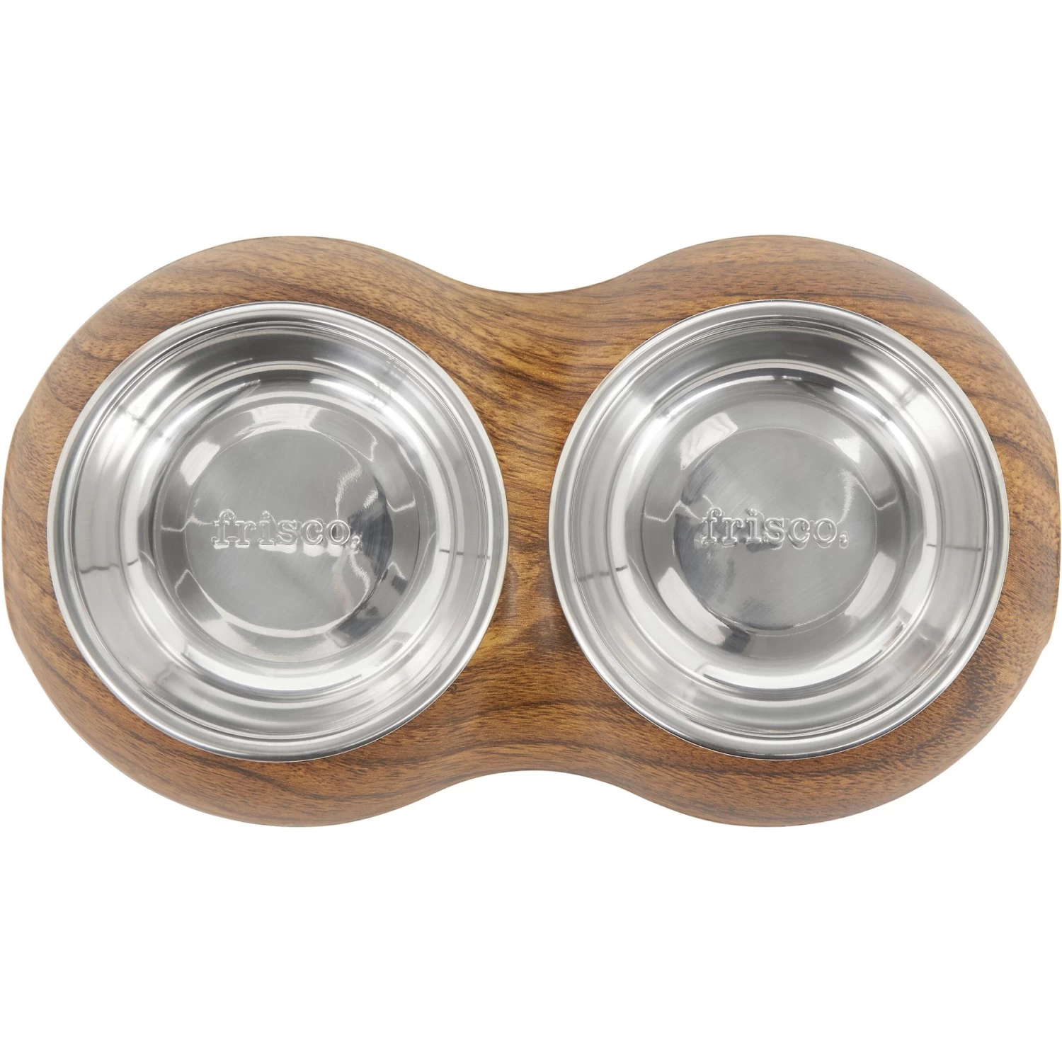 Frisco Premium Wood Elevated Bone Shape Stainless Steel Double Diner Dog & Cat Bowl, 3 Cup