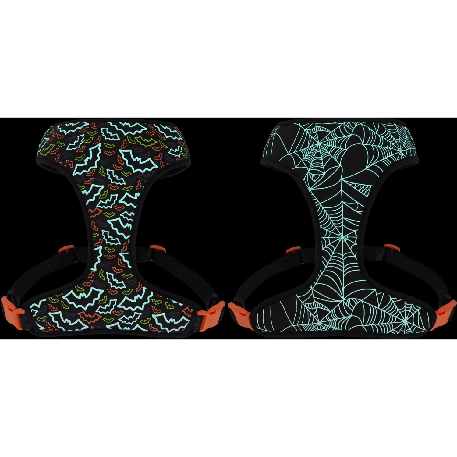 - Glow-in-the-dark reversible harness features bats on one side and spiderwebs on the other—from Frisco, by the pet experts at Chewy.
