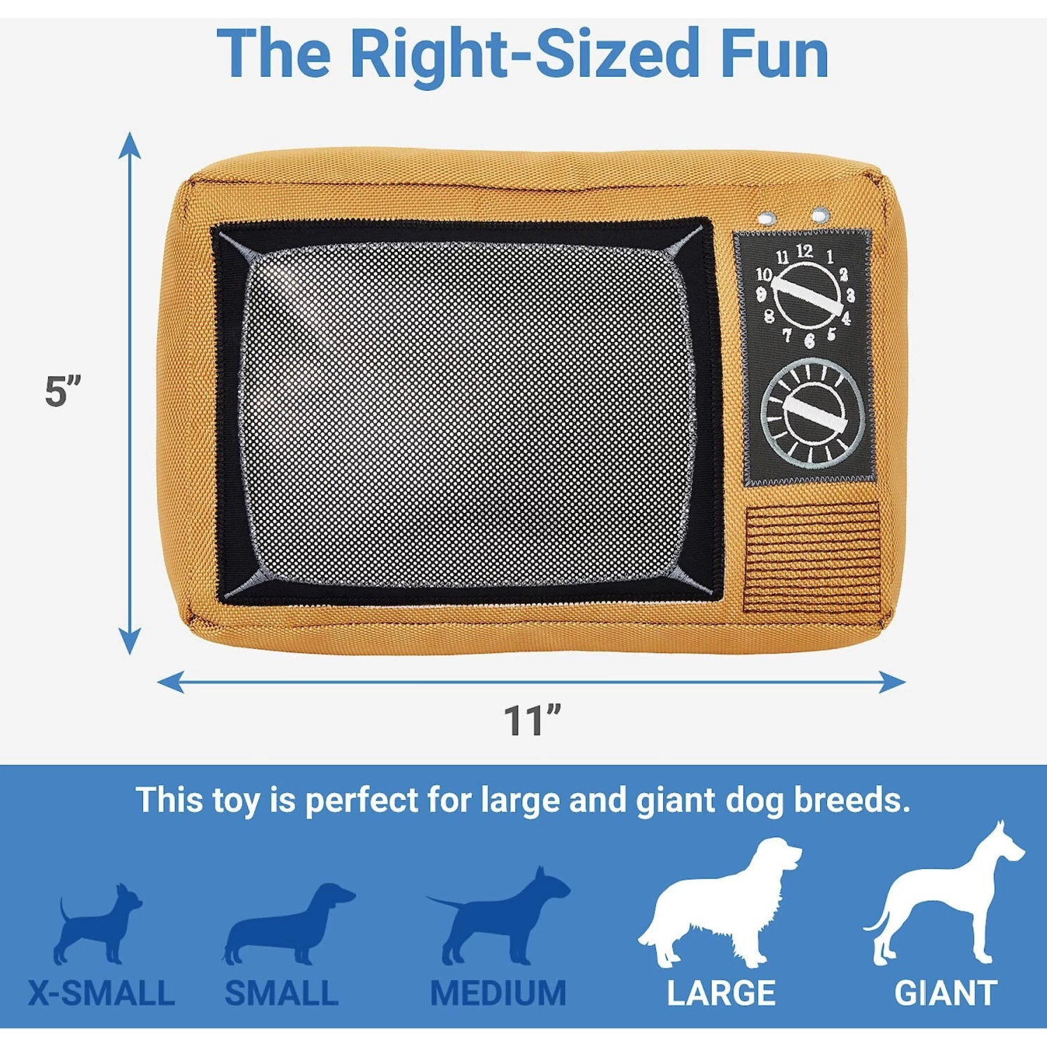 - Retro wood-paneled TV dog toy adds some nostalgic cuteness to your dog’s toy collection.